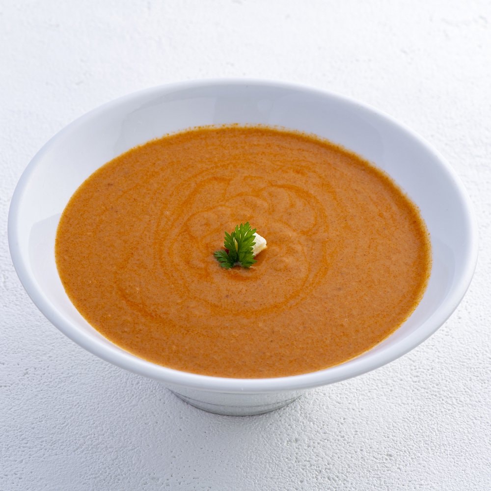 トマトの味が濃い竹田産の完熟トマトを使用したクリームスープです。袋詰めする直前で 生クリームを加えることで、濃厚でクリーミーなスープに仕上げました。口に含むと甘みを 併せもった溌剌とした酸味がパッと広がり、その後をクリームのまろやかさが追いかけて くる、広がりのある味わいをお楽しみいただけます。『酸味とクリームのバランスが絶妙』 と総料理長が最も気に入っている「百膳の夢」自慢の逸品です。